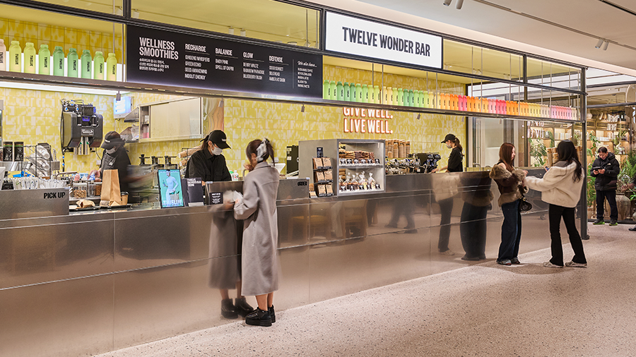 세계 각국의 식문화를 캐주얼하게 풀어낸 고메 델리 ‘트웰브 키친TWELVE KITCHEN’에서는 취향에 따라 플레이트를 완성할 수 있고, 국내산 제철 재료로 한식을 현대적으로 재해석한 ‘발효:곳간’도 새로운 미식을 선사한다. 다이닝 공간 중에서도 트웰브의 정체성을 가장 선명하게 드러낸 곳은 바로 ‘트웰브 원더바TWELVE WONDER BAR’. 인삼, 마카, 햄프씨드, 케일 등 40여 종의 재료를 블렌딩해 만드는 프리미엄 스무디는 트웰브가 지향하는 감각적인 웰니스를 완성하고자 했다.