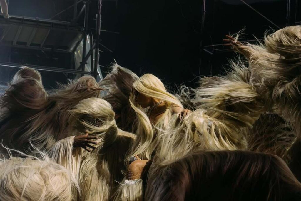 이번 무대는 ‘머리카락, 근육, 뼈’라는 세 가지 키워드의 변주를 중심으로 구성된 실험적 퍼포먼스였으며, 신체가 곧 무대 장치가 되고 아웃핏이 아닌 도자캣 자신이 퍼포먼스의 주체가 되는 내러티브를 담고 있었다.