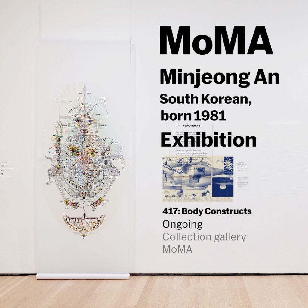안민정 작가의 <자화상>(2024)이 80년대생 한국 작가 최초로 뉴욕현대미술관MoMA에 영구 소장되었다. 백남준, 양혜규 등 한국을 대표하는 작가들의 뒤를 이어, 안민정의 합류는 한국 작가 30여 명이 MoMA 컬렉션에 자리 잡는 이정표가 된다. MoMA에 영구 소장된다는 것은 어떤 의미일까? 기준은 명확하다. 시장 가치나 유명세가 아니라, 현대 디자인과 예술사에 중대한 영향을 미쳤는지, 그리고 미학적 완성도와 혁신성을 동시에 지녔는지다. 안민정의 작업은 출산 이후의 신체 변화를 수학적 기호와 설계도로 번역했다는 점에서 이 기준을 충족한다. 사적 경험을 기술적 언어로 치환하는 방식이다.