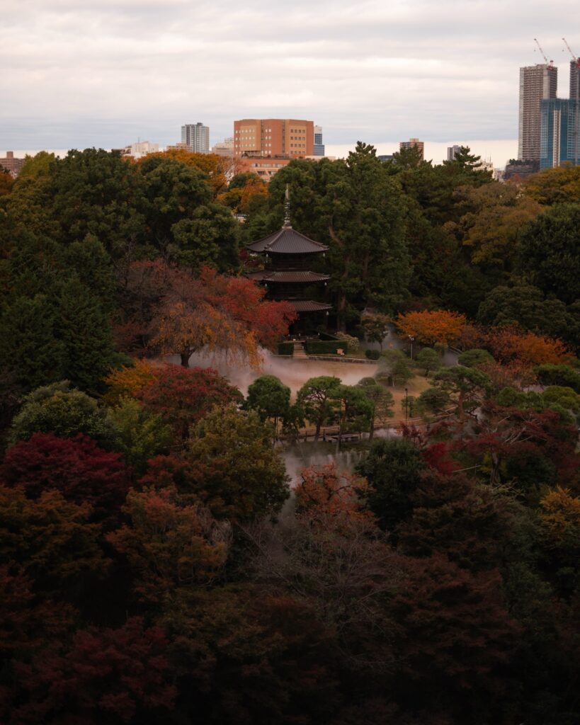 만 그루의 수목을 심어 도심의 오아시스로 자리매김 한것도 이 무렵부터다. 객실에서는 한눈에 들어오는 풍광이지만 직접 나가 산책을 하면 꽤 여유로운 시간을 필요로할만큼 넓은 부지다. 여름이면 반딧불이 빛이 피어나는 벤케이바시 다리, 수십 개의 에도시대 석상들, 표주박 모양으로 굽이치는 유스이치 연못, 14세기 가마쿠라에서 만들어진 석등, 히로시마의 절에서 옮겨온 12세기의 삼중탑. 각기 다른 시공간에서 파생한 물리적 궤적을 헤매다가 문득 도쿄의 겨울 추위가 엄습했을 때, 가지치기를 하고 있던 중년직원이 ‘사무이데스카?(寒いですか?: 추우십니까?)라고 물어왔다. 그 문장을 이해하지는 못했지만 춥냐는 물음으로 직감한 나는 단풍나무 아래에서 고개를 끄덕였다.