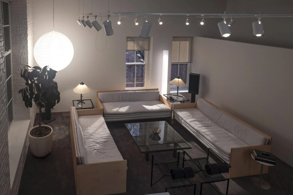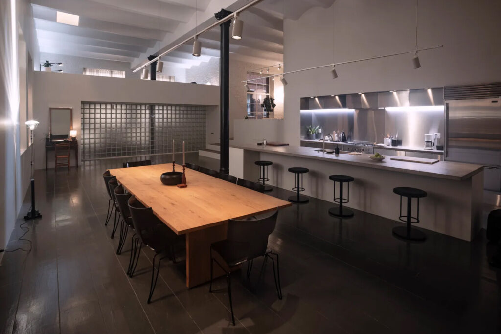 결혼 전 존 F. 케네디 주니어가 거주했던 뉴욕 트라이베카의 아파트는 실제 모습을 재현하기 위해 자료를 집요하게 추적하고, 그 위에 제작진의 상상력을 더해 완성했다. 건물은 지금도 같은 자리에 그대로 남아있지만, 1990년대 모습을 참고할 수 있는 자료가 거의 없어 초기 디자인 과정에서 우여곡절을 겪기도 했다고. 제작진은 부동산의 매물 자료, 건축 설계도 등을 찾아 구조를 유추하며 윤곽을 잡아갔다. 유리, 콘크리트, 스테인리스 등 소재를 활용해 도시적인 느낌을 강조했고, 당시 유행했던 유리블록도 곳곳에 배치했다. 테이블과 의자 등 가구는 실제로 그가 집을 꾸몄을 시기를 떠올리며 1980~1990년대에 디자인된 제품들로 채웠다.