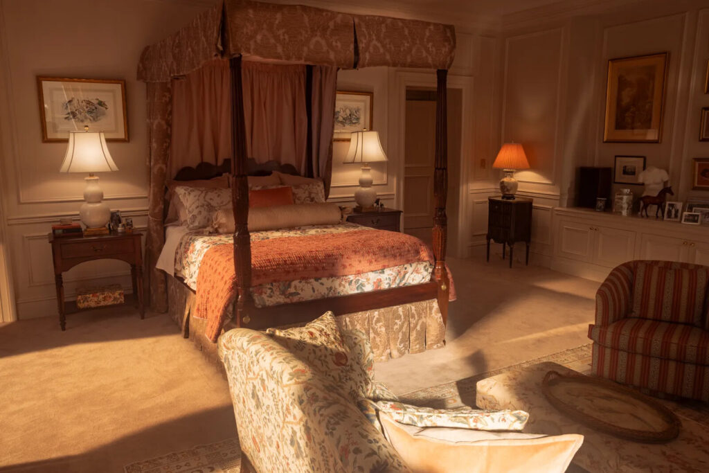 극 전반에 흐르는 심플한 스타일과 달리 그녀의 집은 미니멀리즘과 거리가 멀다. 장식적이고 고풍스러운 유럽풍 인테리어를 중심으로 꾸며져 다른 장소들과 뚜렷한 대비를 이룬다. 대리석 벽난로, 플로럴 패턴, 프랑스풍 가구 등으로 채워져 풍부한 색과 패턴, 오브제로 가득하다. 이러한 인테리어는 재클린 케네디가 살아온 복잡한 삶과 감정을 은유적으로 드러내는 장치가 된다. 그녀는 이곳에서 가족과 갈등을 겪기도 하고, 남편을 그리워하며 홀로 춤을 추거나, 과거를 돌아보며 자신의 삶을 정리한다. 극 중반까지 가장 풍부한 색감과 이야기로 채워진 공간이자, 하나의 캐릭터처럼 존재감을 드러내는 장소다.