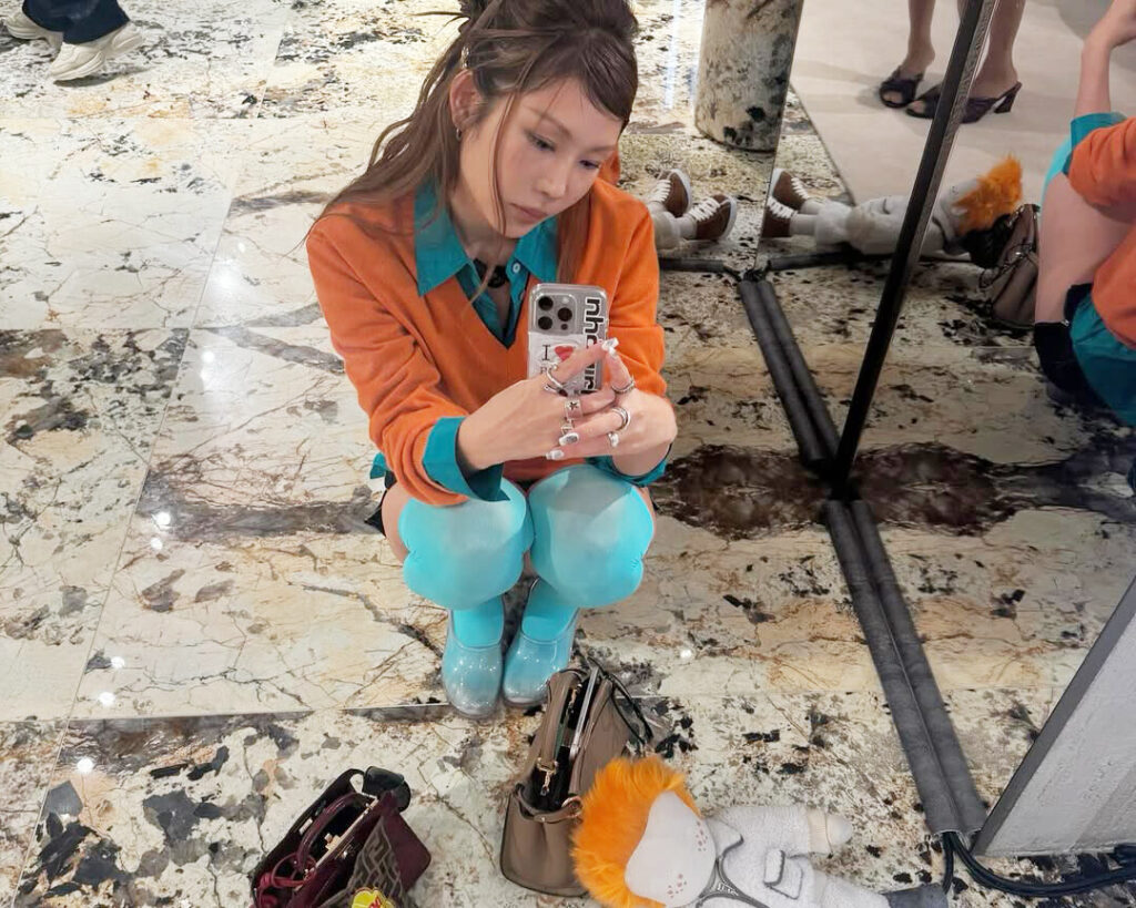 (오) 청록색과 오렌지 컬러의 보색 대비로 차려입은 인플루언서 젬마 Ⓒ젬마