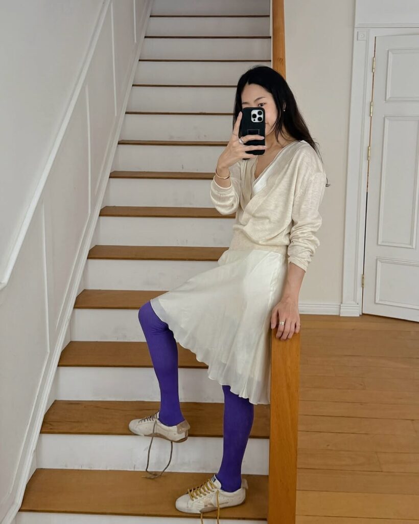 예를 들어 파스텔 톤의 민트와 연보라를 매치하면 보색에 가까운 조합임에도 불구하고 시각적으로 편안한 봄의 무드가 완성된다. 반대로 강렬한 비비드 컬러를 포인트로 쓰고 싶다면, 그 외에는 채도를 뺀 아이템을 섞어 힘을 빼는 전략이 필요하다.
