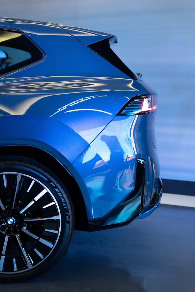후면부 디자인의 중심에는 BMW 로고가 있으며, 상단 루프 스포일러에서 테일게이트 중앙의 오목한 캐릭터 라인으로 이어지는 유려한 흐름은 이 새로운 로고를 강조한다. 전면 주간주행등과 달리 좌우를 길게 연결하는 수평 구조로, BMW 특유의 L자 형태를 유지하면서도 광원을 여러 층으로 구성해 입체감을 강조했다. 전면에서 라이트 그래픽이 그릴과 헤드라이트를 하나로 묶었다면, 후면에서는 이 수평 테일라이트가 후면 전체를 관통한다. 전면과 후면이 서로 다른 얼굴을 만드는 것이 아닌 동일한 빛의 언어를 공유하는 셈이다.