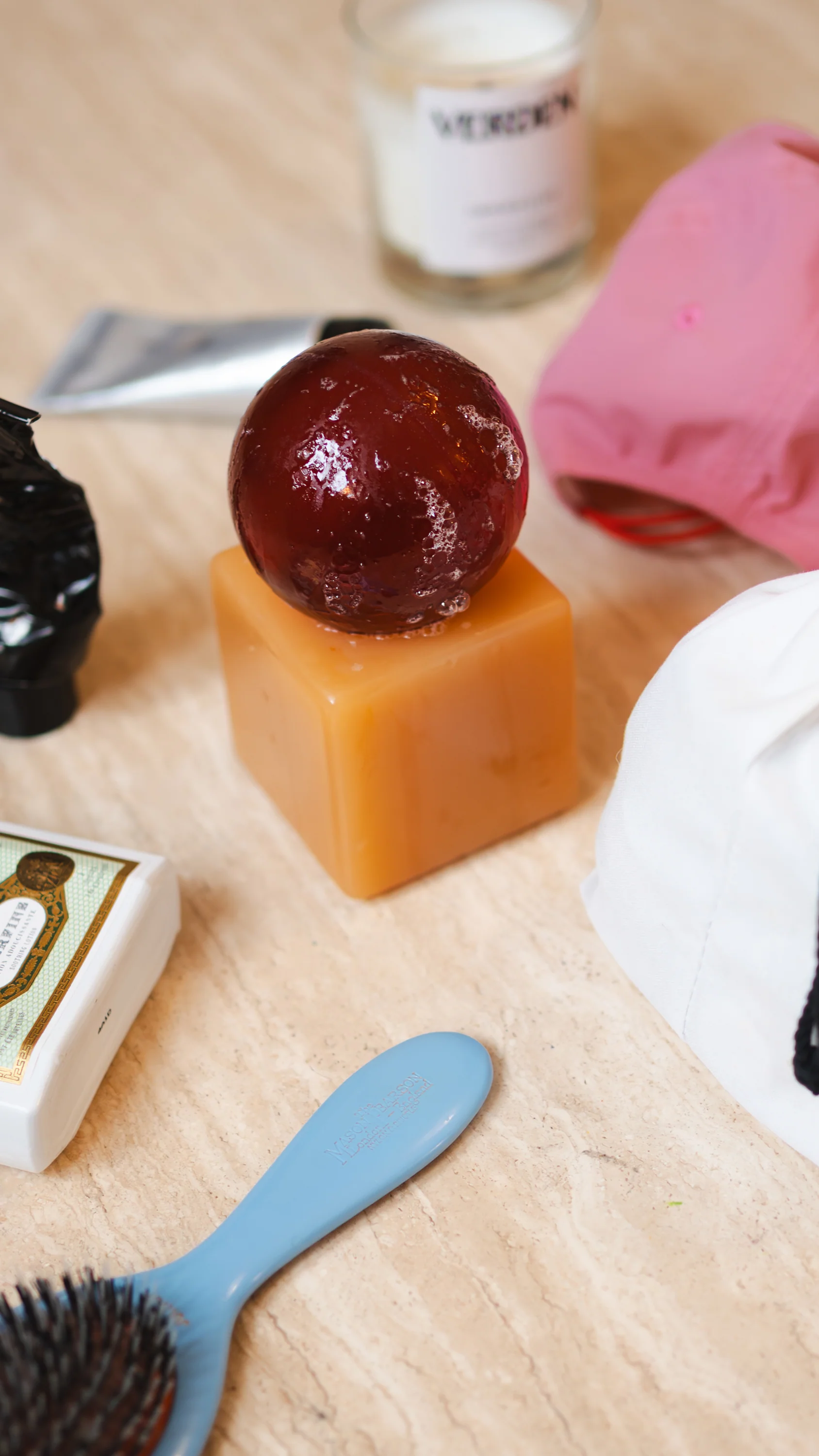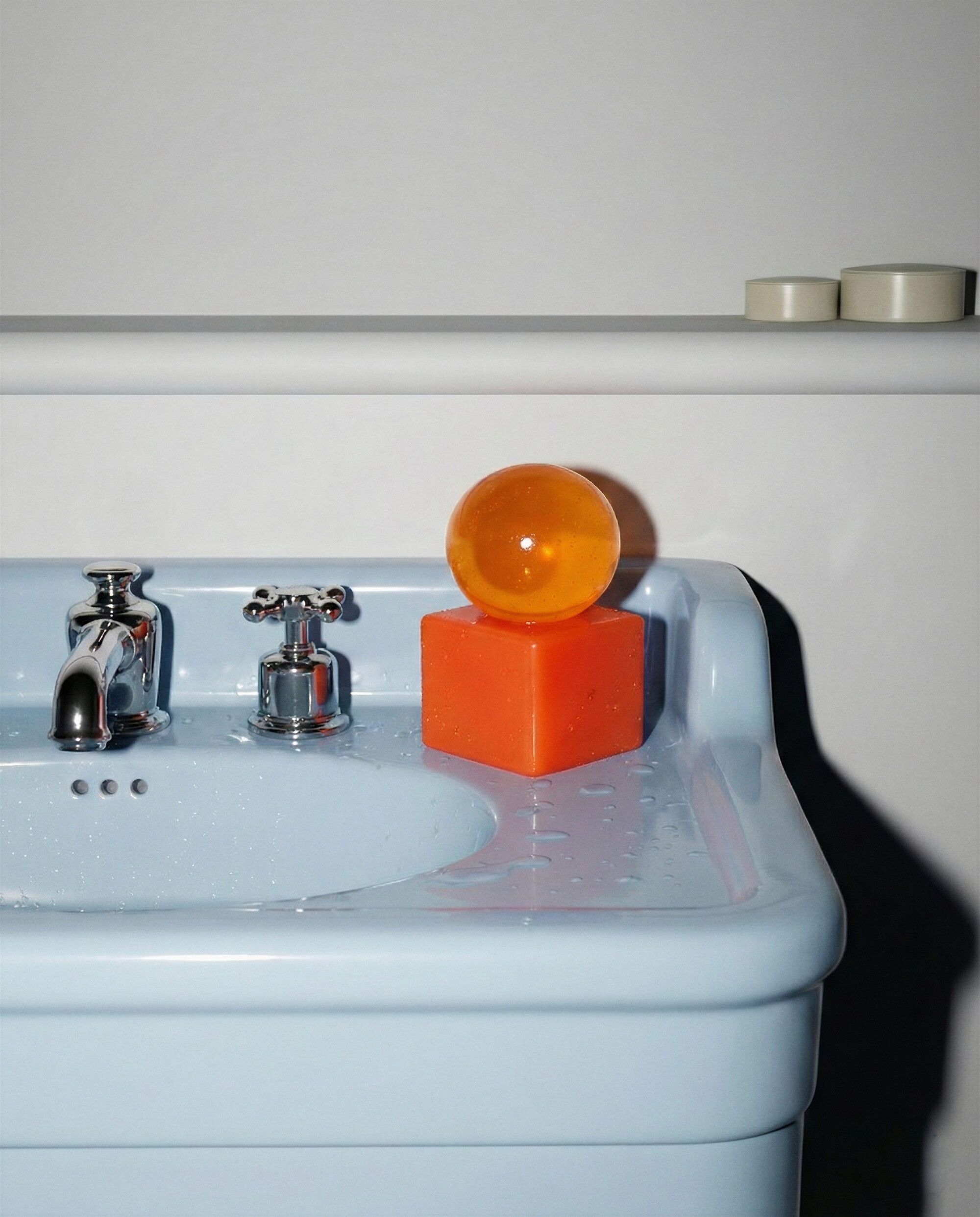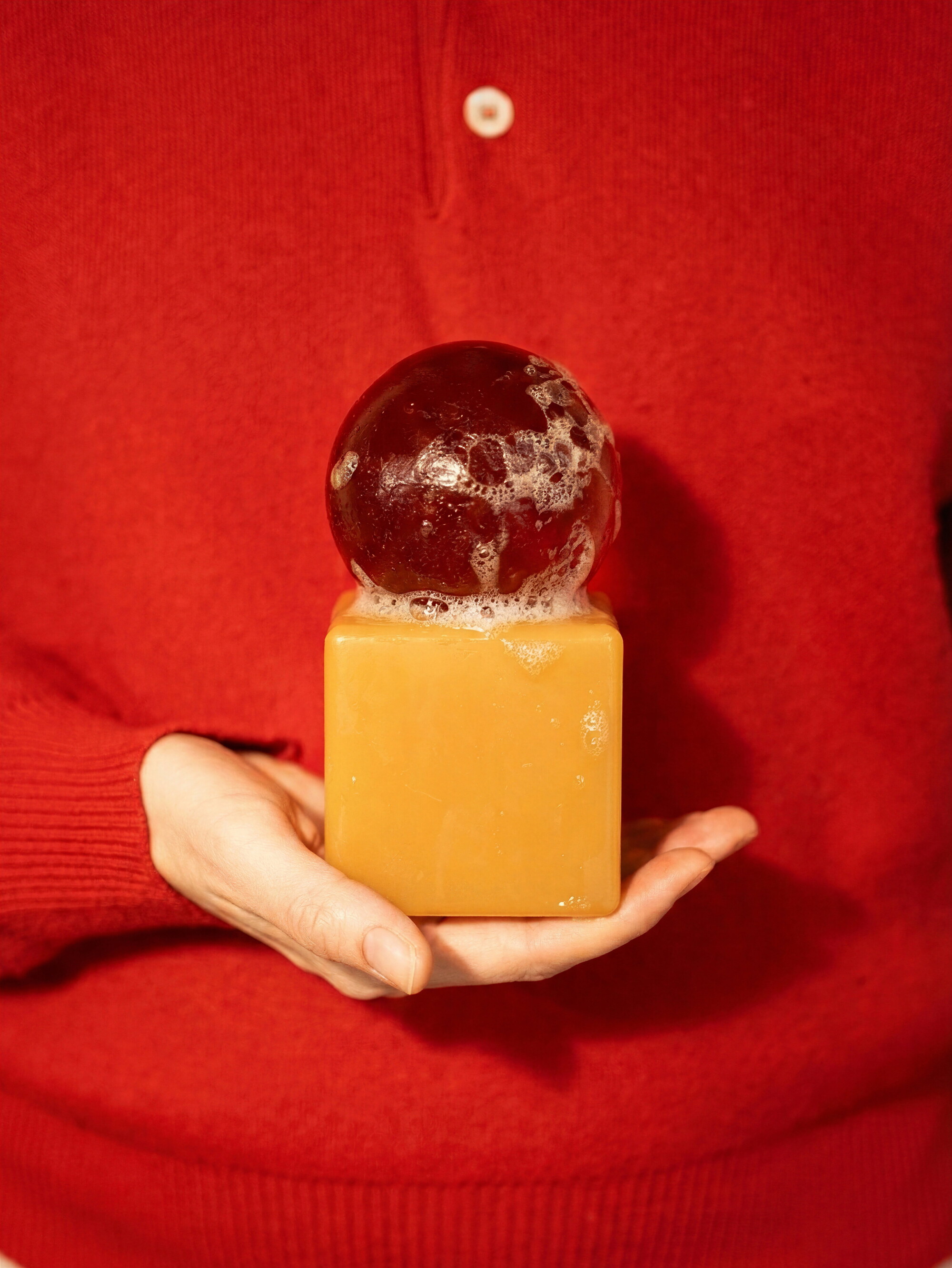 조형적인 비누들은 소규모 수작업 공정을 통해 하나하나 제작·조립되며, 정교한 제작 과정과 감각적 디테일에 대한 디자이너의 집요한 관심을 드러낸다. 각 OBA Soap은 반투명한 글리세린 비누 구Sphere가 새틴 마감의 컬러 매칭 레진 큐브 베이스 위에 놓인 구조로 이루어져 있다. 이러한 조합은 무광과 광택, 고체와 투명, 원과 정육면체라는 상반된 요소들 사이의 긴장감 있는 대화를 만들어낸다.