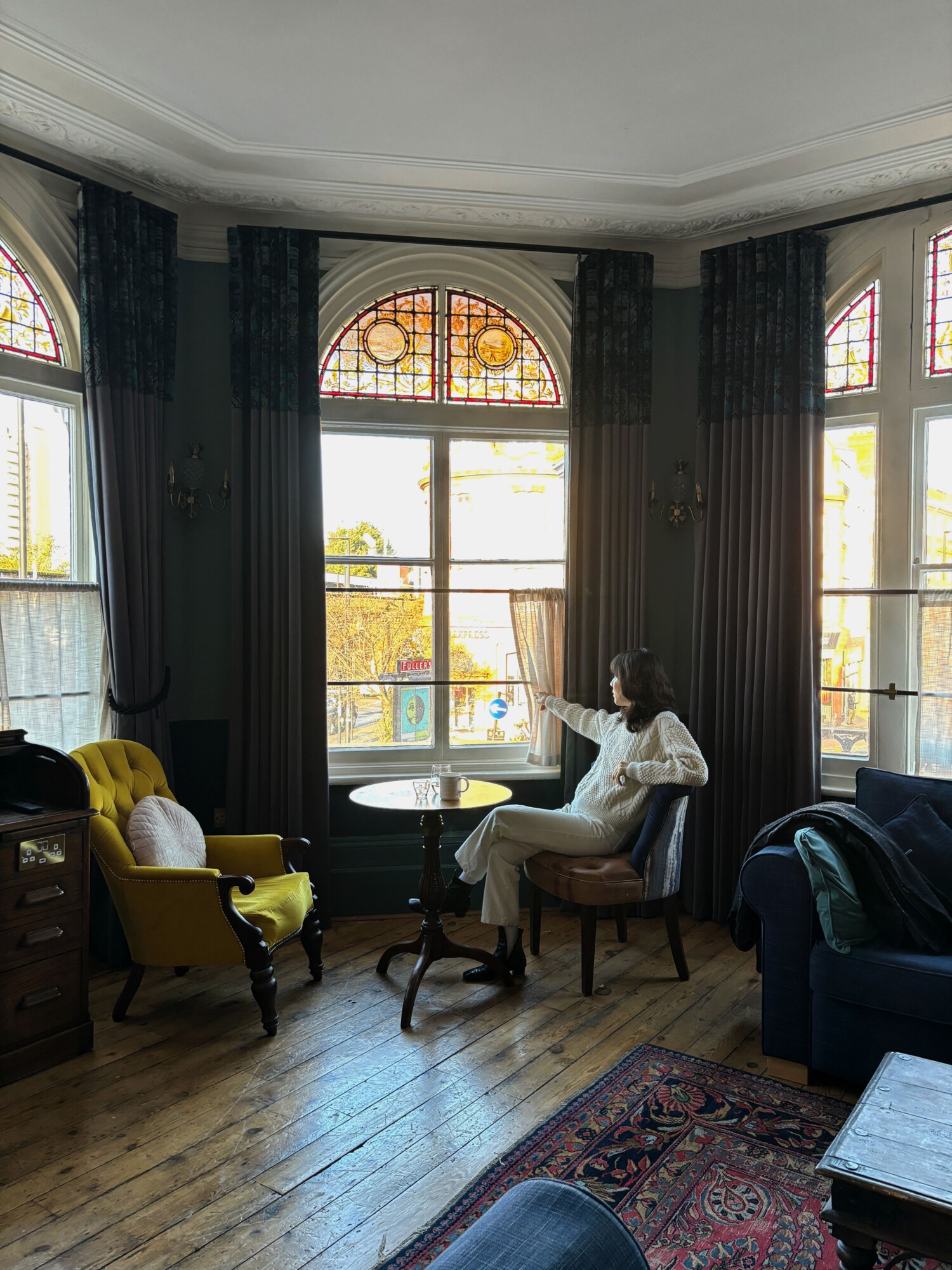 묵고 있는 오너 스위트 룸은 건물 꼭대기 층을 모두 쓰는 펜트하우스형 객실이다. 밝은 오크 벽으로 침실과 거실을 구획하고, 기다란 욕실은 발코니로 향해있는 커다란 욕조와 나부끼는 화이트 커튼으로 마무리된다. 복숭아색 크바드라Kvadrat로 감싼 아우도Audo의 이브Eeve 모듈러 소파, 아리아케Ariake 라운지체어는 덴마크에서 몰고 온 놈 아키텍츠의 따듯한 질감을 표현한다. 스칸디나비아의 차분한 선과 일본식 미감은 이케바나처럼 여백을 남긴 채, 서로를 침범하지 않는다.
