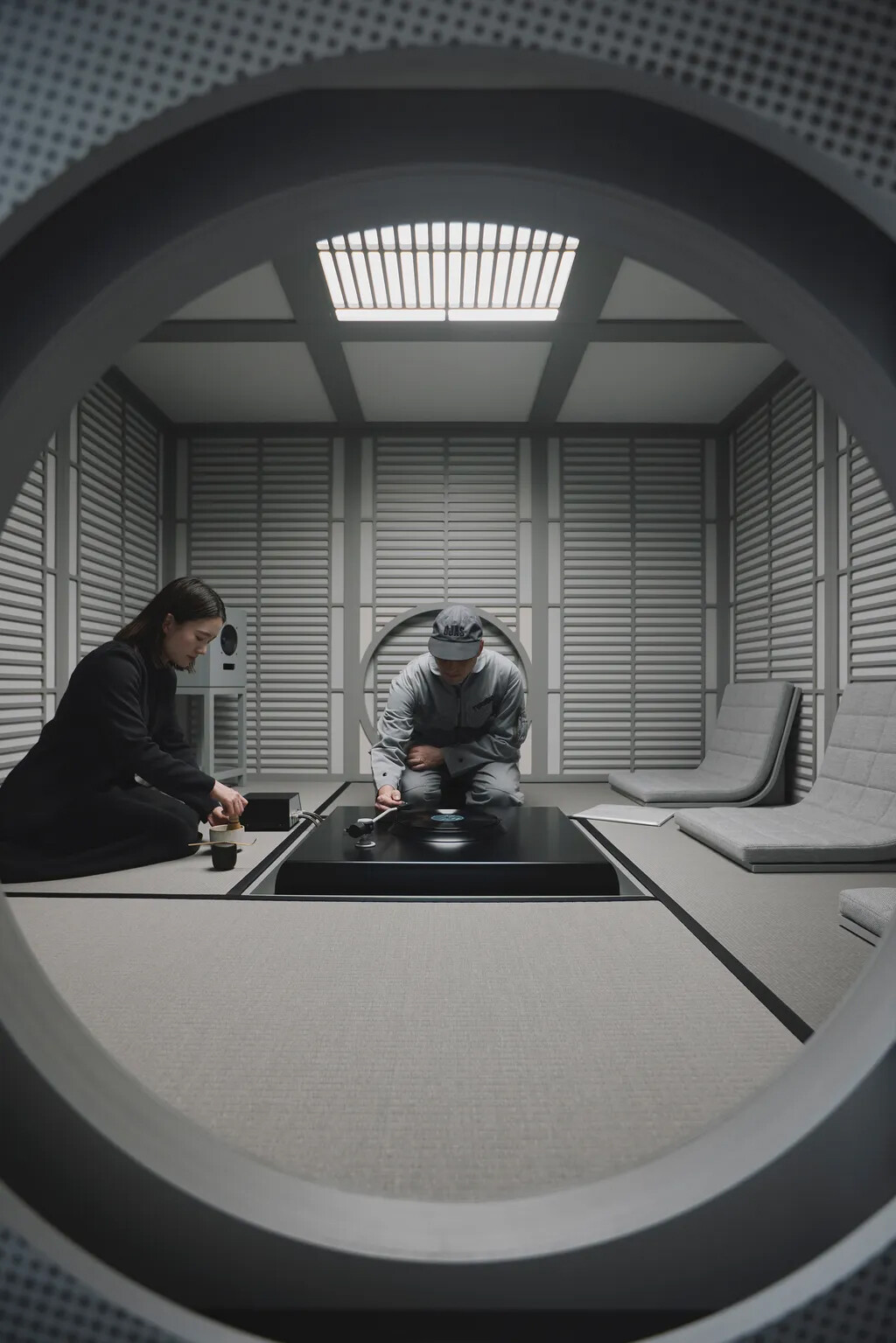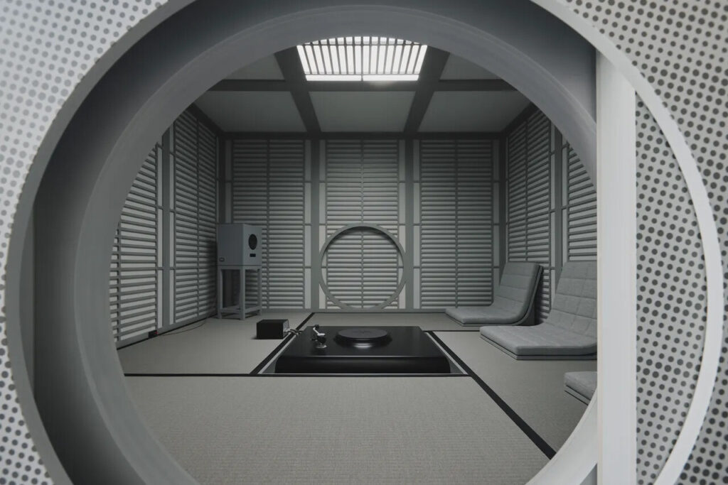 사운드 하우스를 만날 수 있는 전시 〈Between Space and Sound〉는 6월 5일까지 도쿄에서 진행된다. 전시는 총 3개 층으로 구성되는데, 지하층에서는 이번 협업으로 제작된 스피커 모델을 자세히 살펴볼 수 있다. 1층이 바로 다실에서 영감을 받은 사운드 하우스 공간이다. 데본 턴불의 시그니처 색상을 테마로 꾸몄으며, 중앙에는 턴테이블이 자리한다. 가구부터 흡읍 패널까지 모두 이 공간을 위해 맞춤 제작됐으며, 사물과 사물, 공간과 공간 사이에 간격을 두어 유연한 여유를 더하는 일본의 미학 ‘마間’ 를 반영해 기획한 점도 특징이다. 가득 채우기보다 쉴 틈을 두며 일본의 전통 미학을 현대적으로 해석했다. 모든 것이 오직 음악 감상이라는 단 하나의 의도와 목적만을 갖고 설계된 것. 단순히 스피커의 성능을 강조하는 것이 아니라, 듣는 경험에 몰입할 수 있도록 완성했다.