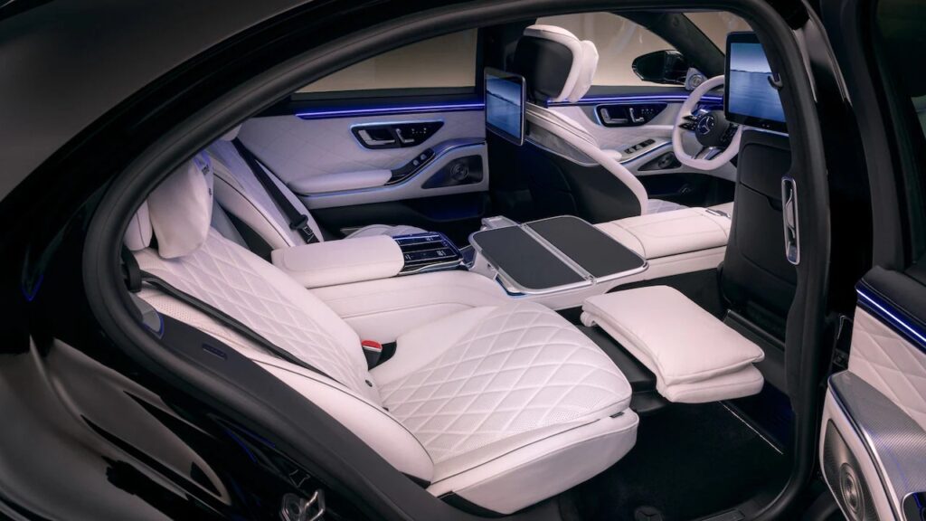 더 뉴 메르세데스-벤츠 S-클래스에서는 모든 여정 속에서 최상의 편안함과 고요한 우아함을 경험할 수 있다. 뒷좌석에서는 새로 적용된 분리형 MBUX 리모컨 2개를 이용해 공조, 윈도우 쉐이드, MBUX 하이엔드 뒷좌석 엔터테인먼트 시스템의 13.1인치 디스플레이와 같은 차량 기능을 손쉽게 조작할 수 있다. 이 스크린에는 HD 카메라도 통합돼, 마이크로소프트 팀즈Teams, 줌Zoom, 웹엑스Webex 등을 통한 비즈니스 화상회의에 이상적이다.