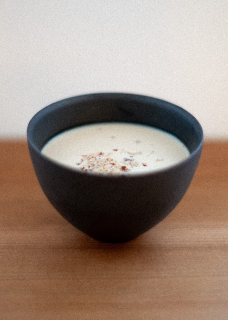 배재희는 오랜 시간 브랜드의 언어를 다듬어온 인물답게, 아사시의 메뉴에서도 그 결이 먼저 읽힌다. 직접적이면서도 은밀한 지점에서 균형을 잡는 방식이다. 참기름, 대추, 서리태, 도토리. 익숙한 재료들이지만, 이곳에서는 전혀 다른 위치에 놓인다. 참기름 호지차 크림 라떼, 대추 서리태 짜이, 도토리 판나코타처럼. 이 재료들은 전면에서 맛을 지배하기보다, 향과 질감으로 개입하며 전체의 결을 미묘하게 흔든다. 강하게 드러나지 않지만, 분명히 기억에 남는 방식이다.