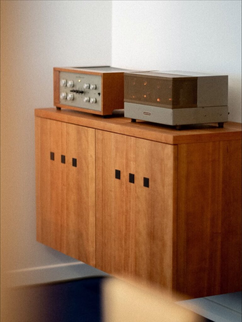공간 디자인을 맡은 아세티크 팀과 가장 먼저 논의한 것은 ‘무용하지만 아름다운 것’을 공간의 언어로 번역하는 일이었다. 마감재와 집기, 음악과 사람에 이르기까지, 어떻게 보이고 어떻게 느껴질지를 하나씩 결정해 나갔다. 특히 사운드는 경험의 밀도를 좌우한다. 마란츠의 빈티지 앰프와 탄노이 스피커로 사운드를 구축했다. 요소를 덜어내는 대신, 각 디테일의 완성도를 극한까지 끌어올리는 방식이다.