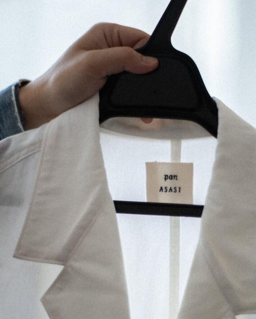 아사시의 유니폼은 단순한 작업복이 아니라, 공간에 머무는 태도를 완성하는 장치다. 차를 내리는 시간과 그 주변의 공기를 하나의 결로 묶기 위한 설계에 가깝다. 일본 디자이너 pan과 협업해 1960~70년대 유럽의 약사와 의사 유니폼을 아카이브하며 형태를 정리했다. 클래식한 실루엣 위에 절제된 라인과 소박한 디테일을 더해, 단정함과 미묘한 긴장감을 동시에 남긴다. 이 감각은 에릭 로메르의 영화에서 포착한 정서와 맞닿아 있다. 페미닌하면서도 어딘가 낯선 균형. 아사시가 지향하는 정제된 유머는 이 유니폼을 통해 가장 또렷하게 드러난다.