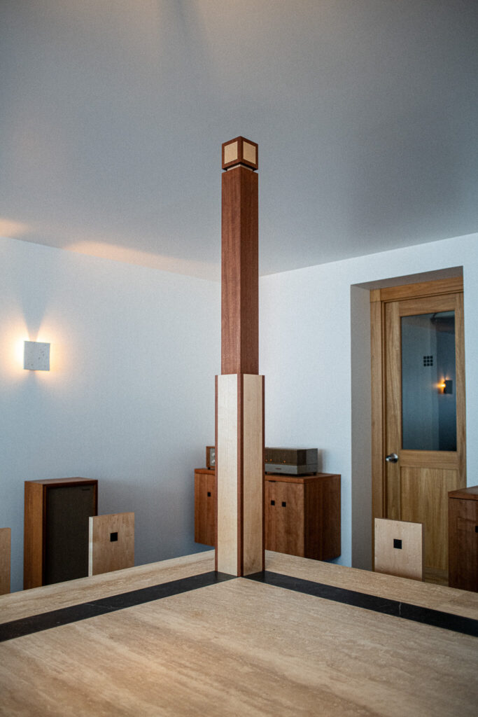 이 공간을 지배하는 소재는 원목이다. 선별과 가공, 그 모든 과정을 온전히 구현할 수 있는 파트너로 조용무 작업소가 선택됐다. 가구는 단순한 구성 요소를 넘어, 아세티크가 설계한 공간의 미학을 물성으로 완성하는 역할을 맡는다. 몸이 닿는 의자부터, 공간의 중심을 형성하는 기둥과 벽면 수납장까지. 모든 구조가 하나의 결로 이어지며, 조용무 작업소의 손에서 정교하게 다듬어졌다.