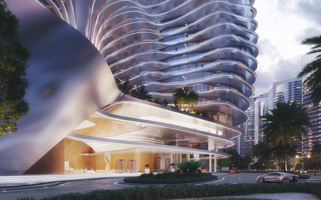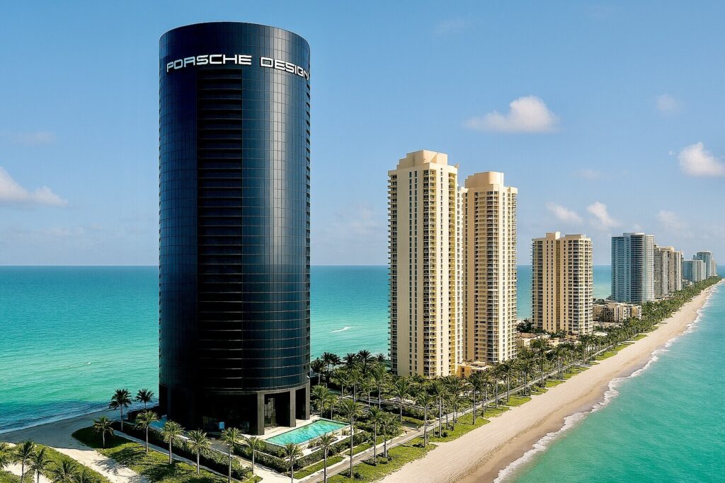 포르쉐 디자인 타워 마이애미Porsche Design Tower Miami는 자동차 브랜드 레지던스라는 개념을 본격적으로 대중화시킨 프로젝트다. 미국 마이애미 서니 아일스 비치Sunny Isles Beach에 위치한 레지던스는 2017년 완공됐으며, 개발사 데저 디벨롭먼트Dezer Development와 포르쉐 디자인 그룹Porsche Design Group의 협작이다. 총 60층 규모로, 일반적인 럭셔리 콘도와 달리 자동차 경험을 건축 구조의 중심에 두고 설계한 점이 특징이다.