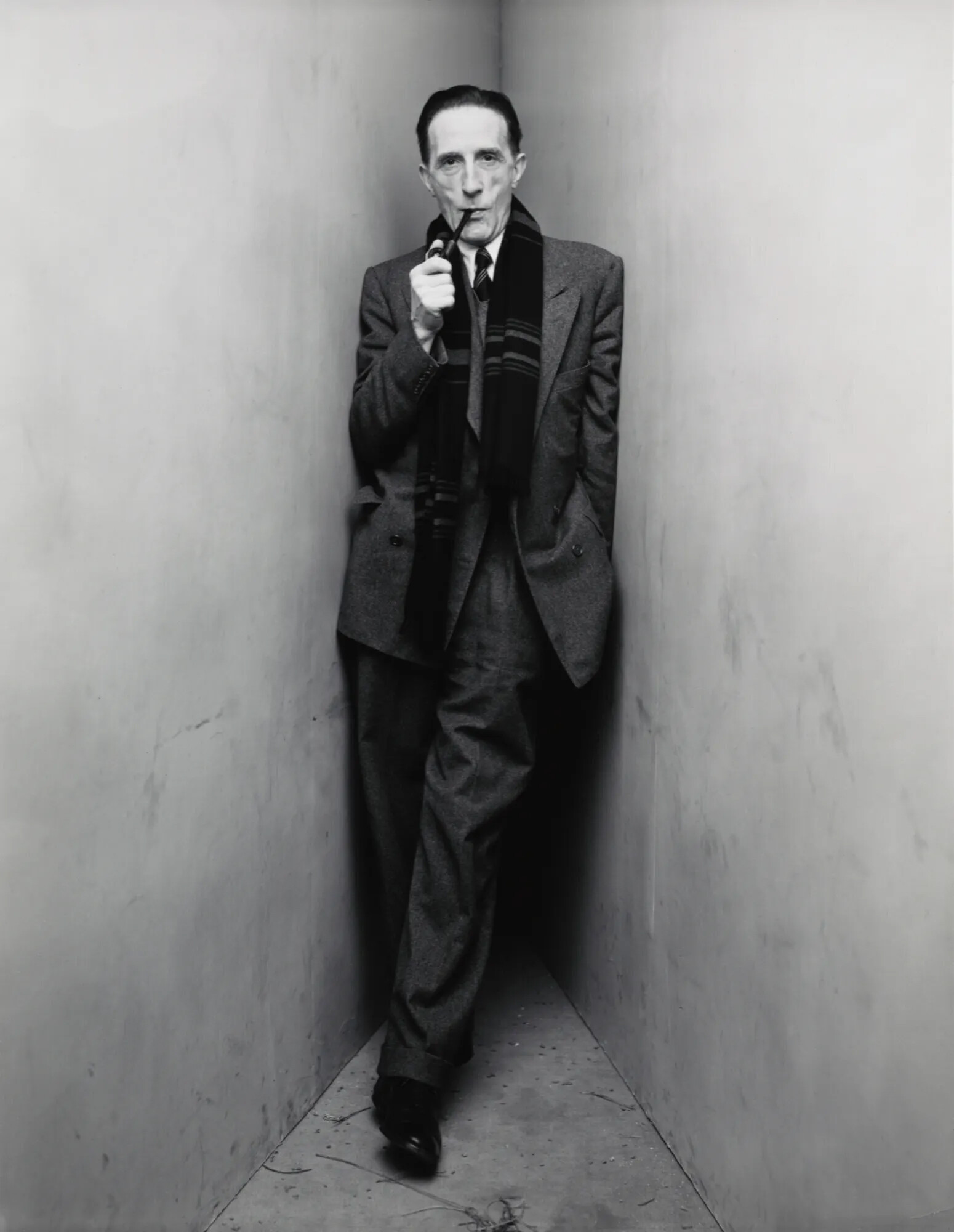 펜은 이 장치에 대해 “이 좁은 공간이 사람들을 오히려 편안하게 만들었다”라고 회상했다. 모서리는 서 있는 사람의 심리적인 방어 기제를 무너트렸고 가공되지 않는 ‘진짜 본질’을 끄집어내는 심리적 장치였다. 배경도 소품도 없는 구석에서 오직 인물의 몸짓과 시선만이 그 사람을 드러내지만, 그 어떤 것보다도 그 사람을 알 것만 같은 이미지들이다. 특히 파블로 피카소Pablo Picasso를 촬영한 1957년 사진은 얼굴이 극단적으로 잘려있다. 얼굴 절반에는 깊은 명암이 걸쳐 있고 한쪽 눈에는 창문이 반사되어 있다. 입체파는 세계의 파편을 깨트렸지만 이 사진가는 다시 한번 그 파편을 깨버렸다.