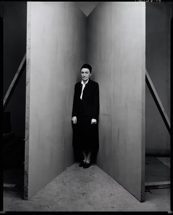 어빙 펜의 독창성은 이 사진이 가장 잘 드러낸다. ‘코너 포트레이트Corner Portraits’라고 부르는데 스튜디오에 두 개의 패널을 세워 90도보다 좁은 구석을 만들었다. 그리고 그 안에 사람을 세워두었다. 마르셀 뒤샹Marcel Duchamp은 파이프를 쥔 채 좁은 벽 사이로 몸을 비틀었고, 살바도르 달리Salvador Dalí는 양팔과 다리를 넓게 벌렸고, 조지아 오키프Georgia O'Keeffe는 구석에서 렌즈를 똑바로 응시했다. 듀크 엘링턴Duke Ellington, 이고르 스트라빈스키Igor Stravinsky 같은 당대의 이름들이 그 좁은 틈 안에 섰다.