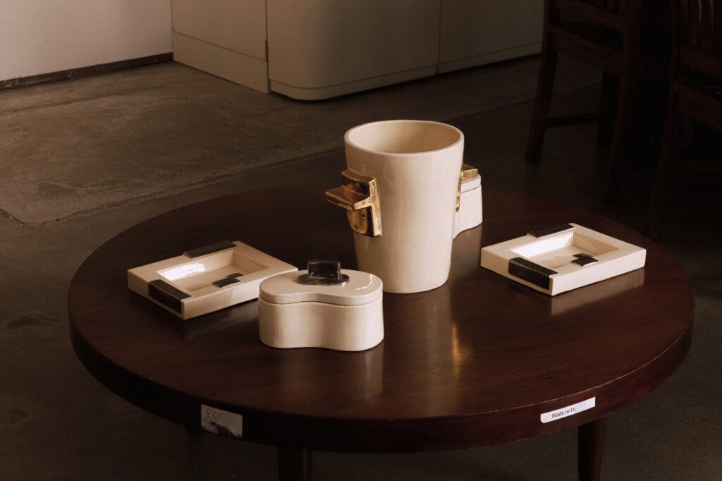 처음으로 해외 아트 옥션에서 비딩을 거쳐 구입한 스웨덴 세라믹 세트. 아이보리와 골드 핸드 페인팅의 조화가 워낙 제 스타일이고 작지 않은 사이즈감과 기능 또한 마음에 쏙 들어요. 화병 또는 와인 칠러로 다양하게 사용하고 있는 큰 팟Pot 과 액세서리 또는 다과를 담기도 하는 플레이트, 그리고 뚜껑 달린 콩 모양의 합까지. 제 보물 중 하나에요.