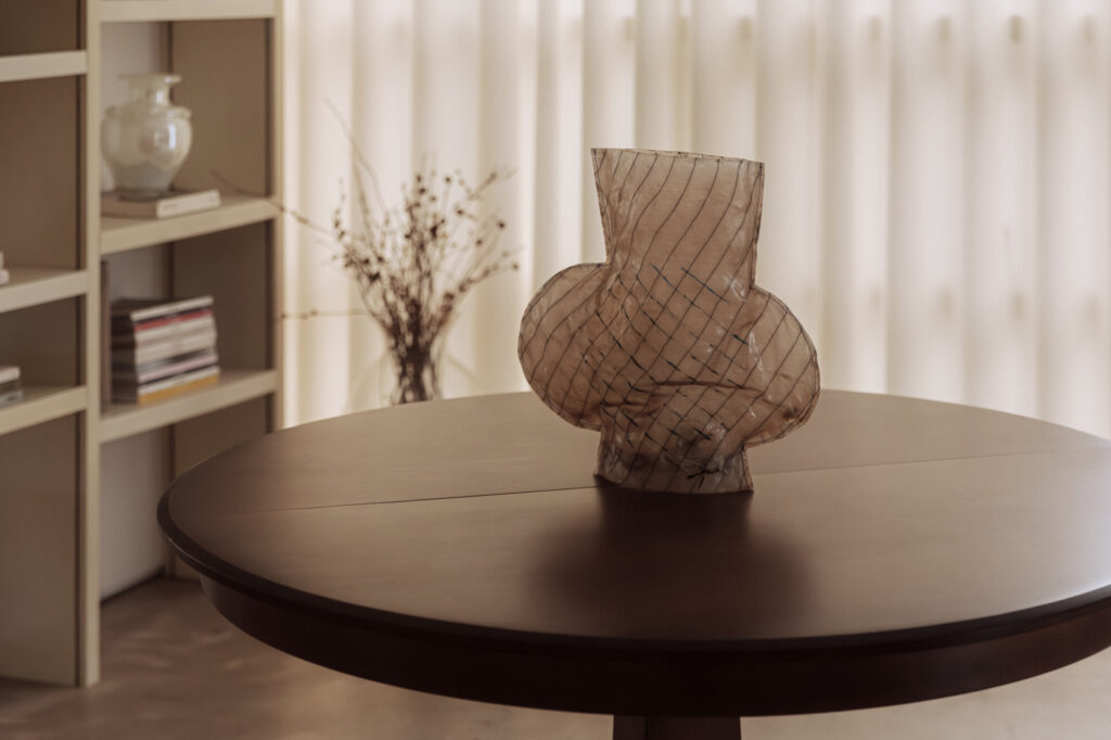 뉴욕을 기반으로 활동하는 김민재 작가의 화병. 지난 파리 디자인 위크에서 함께 전시를 치르며 절친한 친구가 됐어요. 산업적인 소재인 레진과 파이버 글라스를 사용해 마치 손으로 빚은 토기처럼 따뜻하고 불완전한 미감을 만들어낸 게 특징이에요. 티룸에 두려던 계획을 변경해 집으로 모셔 왔을 만큼, 볼 때마다 소유욕을 자극하는 저의 애장품입니다.
