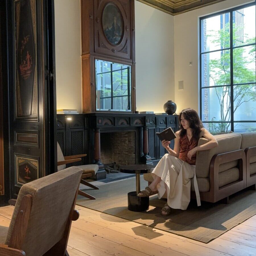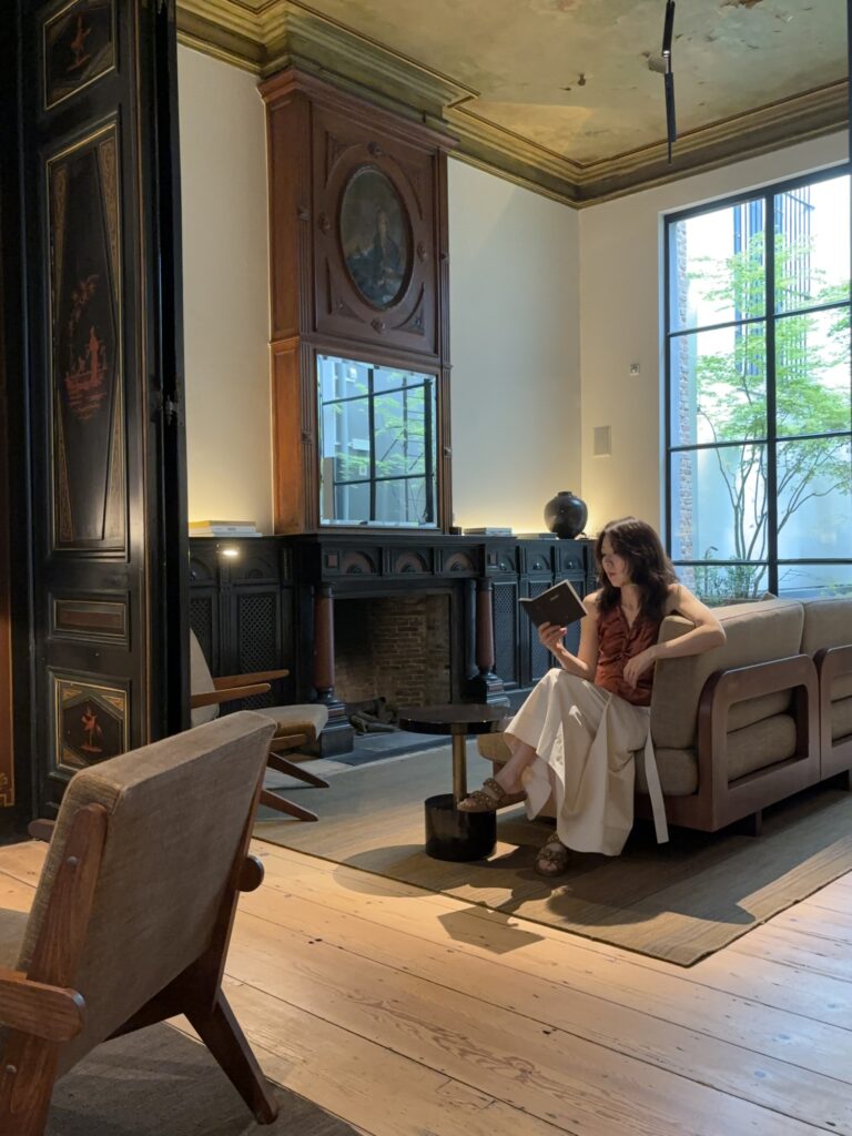 섬세하게 골라둔 책들, 게다가 흐르는 음악은 계속 그곳이 머무르게 한다. 체크인하던 순간부터 음악이 귀에 명료하게 들어왔다. 호텔의 플레이리스트야말로 분위기의 흐름을 매끄럽게 만드는 핵심이다. 줄리앙에서는 한 곡 한 곡이 더 첨예하게 이어가는 듯했다. 결국 앱을 켜, 휴대폰을 스피커에 갖다 대고 곡 제목과 아티스트를 찾아냈다. Dabeull의 〈Don’t Forget It〉, Thunder cat의 〈A Fan’s Mail〉 같은 노래들이 나의 플레이리스트에 저장됐다. 그 리스트는 라운지에서 보낸 오후의 공기와 소파의 온도, 벽난로 앞에 맴돌던 느린 침묵까지 재생한다. 호텔에 머문다는 것은 단지 잠을 자는 일이 아니라, 누군가가 정성스럽게 차려놓은 취향의 세계를 한 걸음씩 건너며 나 자신의 감각을 시험하고 확장하는 일인지도 모른다. 줄리앙에서의 시간은 그렇게, 여행의 바깥이 아니라 나의 안쪽으로 깊어지고 있었다.